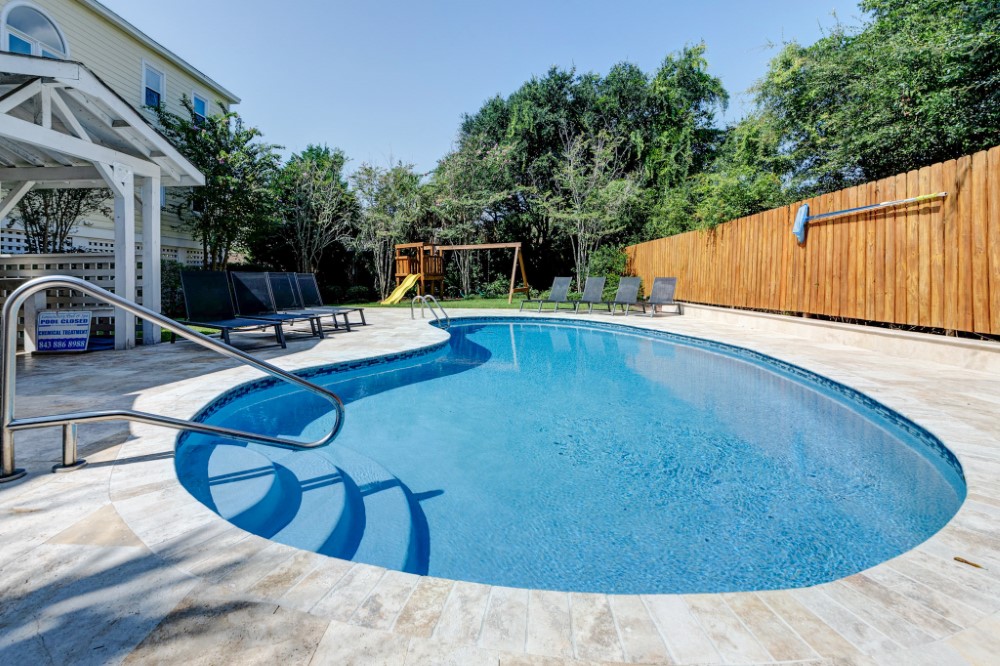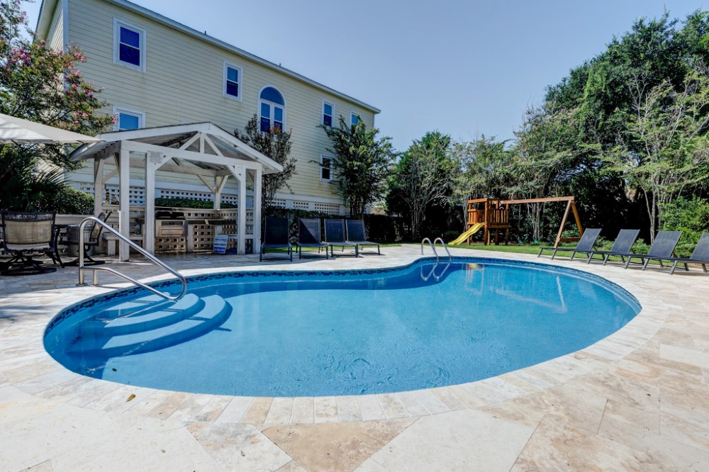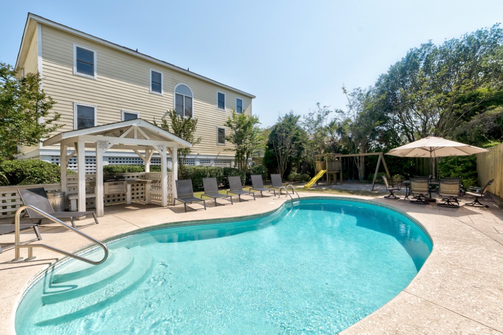 Location! – Ocean View and Private with Elevator – Atlantic Breezes: Great multi family home on Palm Boulevard. This beautifully appointed home has a large, open flowing floor plan with views of the ocean. Huge, covered front porches are a perfect place to enjoy morning coffee. Fenced back yard with private, heated pool and gazebo is an oasis to enjoy afternoon island drinks while the kids enjoy themselves. Public beach access is directly across the street from the front door.