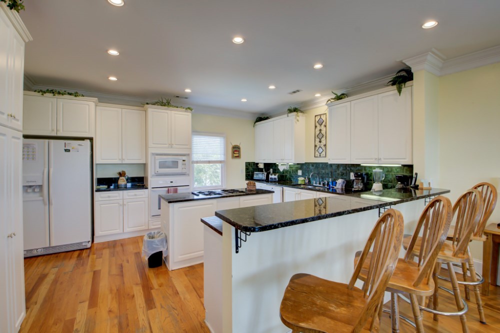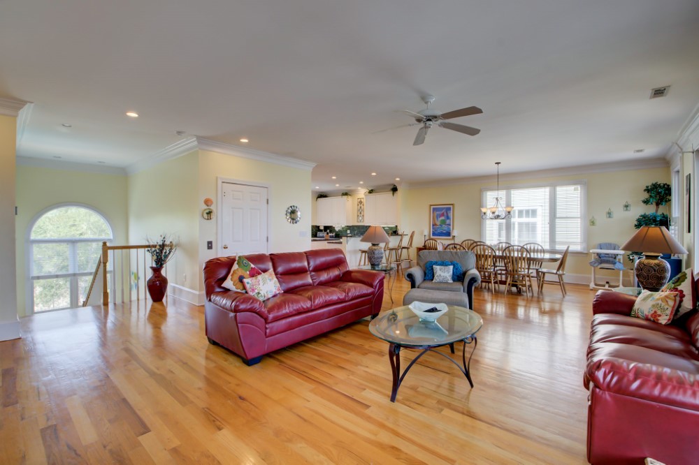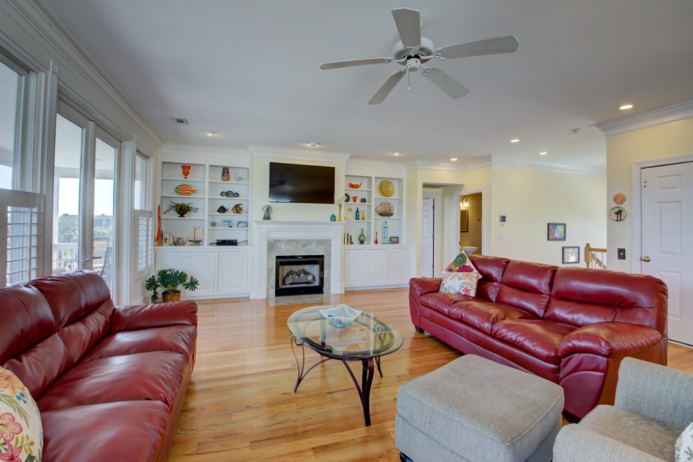 The 2nd floor has an over-sized family room with gas fireplace, DVD Blue Ray, dining room, kitchen, guest bath, and the king master suite with large luxurious bathroom. Master bathroom has a jetted tub for relaxing. Both levels have huge front porches with rockers to enjoy the views and catch those Atlantic Breezes. The home features an elevator, TVs in every bedroom, heated pool, gazebo, granite counter-tops and plenty of parking.