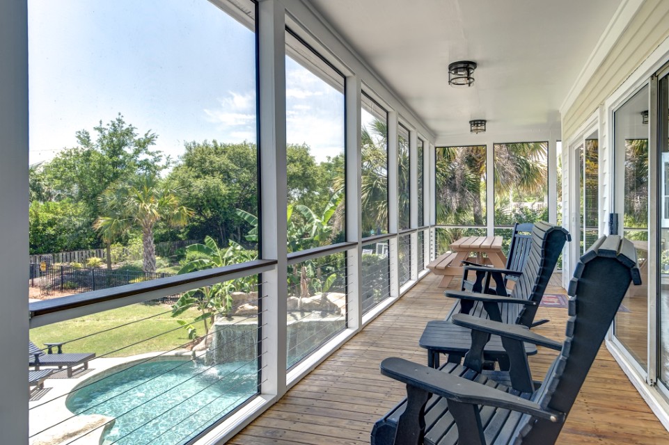 Comfy Beach House with Heated Pool and Views – Location, location, location. Yes, this home is close to the beach (1 block), close to bars/restaurants (2 blocks), and yet it is snuggled away between the locals so that you can actually relax and enjoy your vacation. On the first floor is an open floor plan that has the kitchen, den and 1/2 bath. There is also a screened in back porch overlooking the pool area. Underneath home there is an outdoor shower with hot / cold water to rinse off the beach sand. On the second floor are 3 bedrooms and 2 full baths. The master bedroom on this floor also has a private balcony with nice views of the ocean. On the third floor is the “Loft”. This is a great room for the kids. It has one queen bed and 2 twin beds with some nice views of the Intercoastal waterway and Bridge.